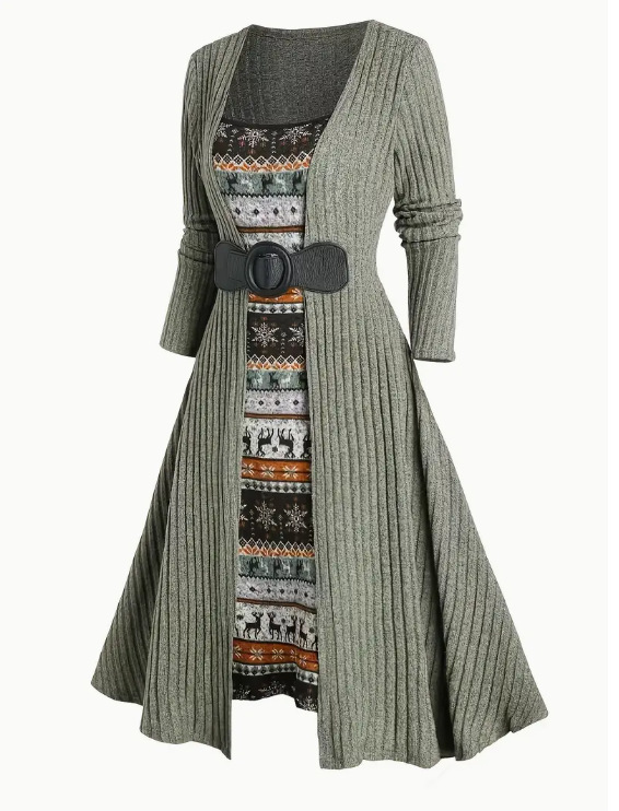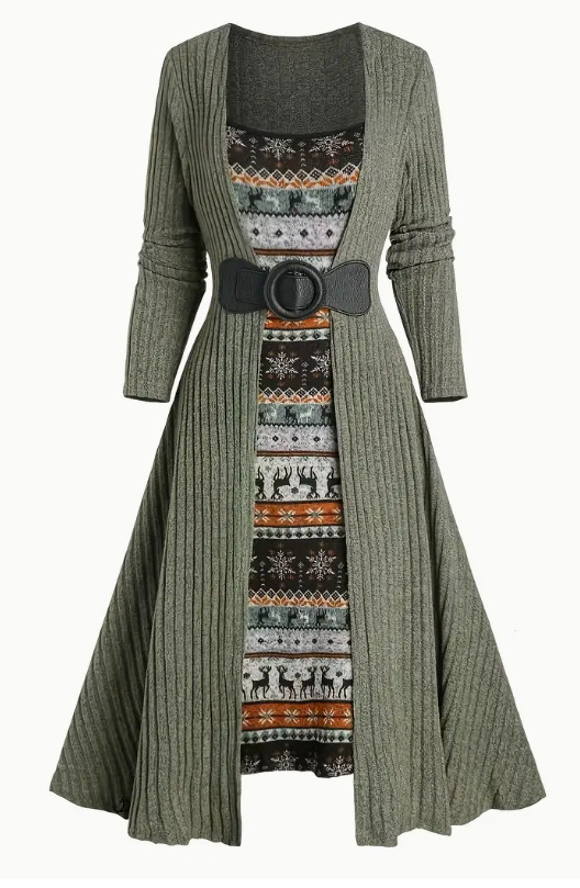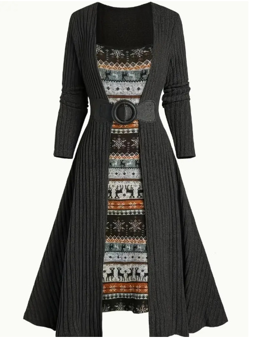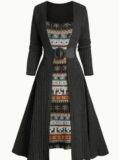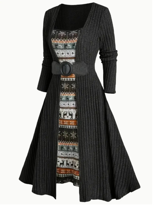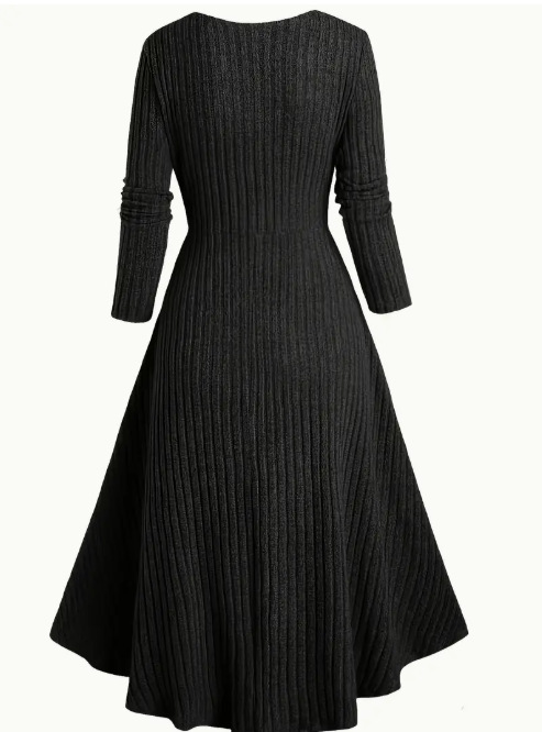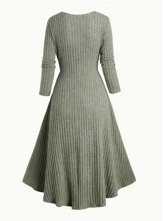 Commuter Long Sleeve Stitching Sunken Stripe Dress