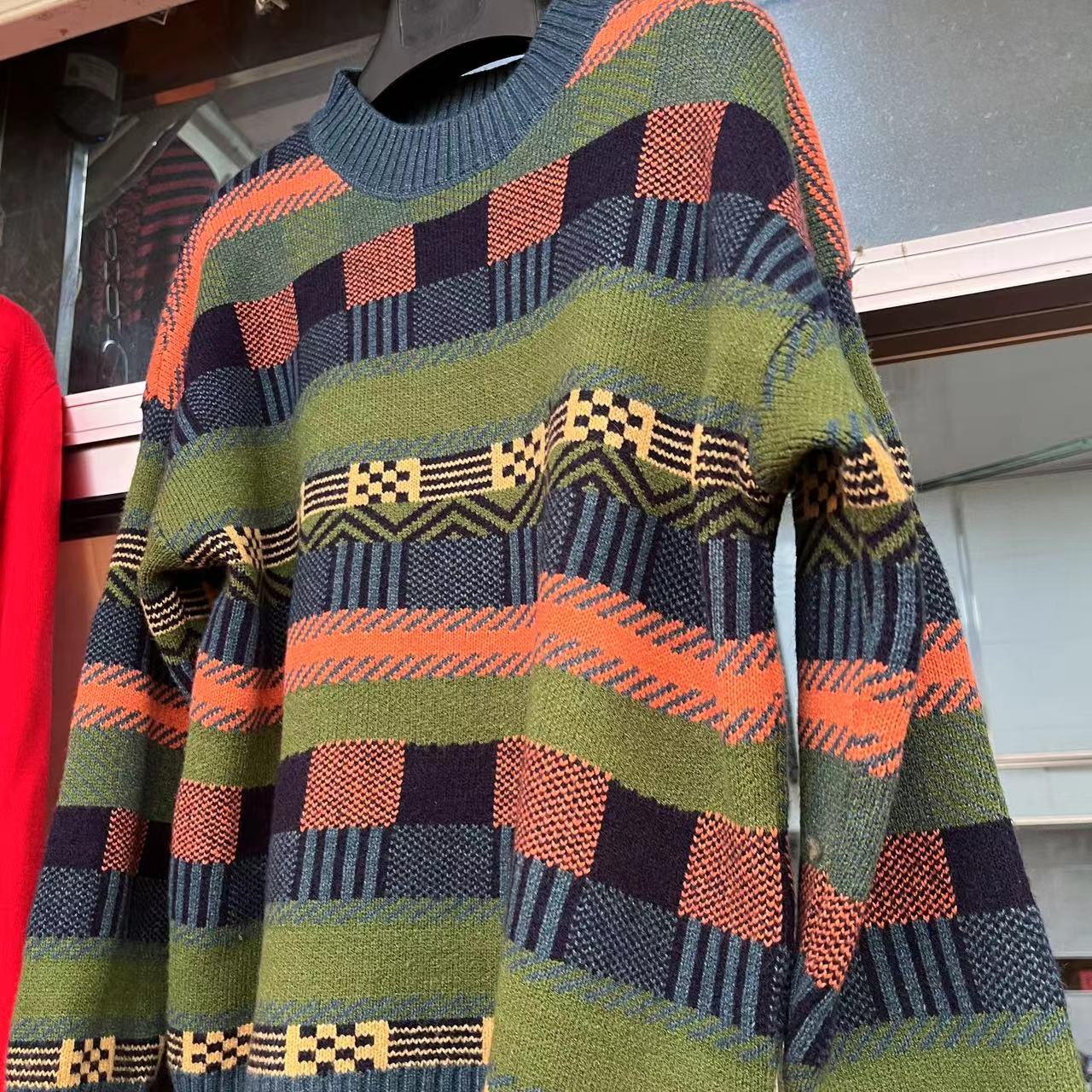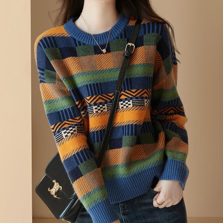 Contrast Color Long Sleeves Knitwear Sweater Coat