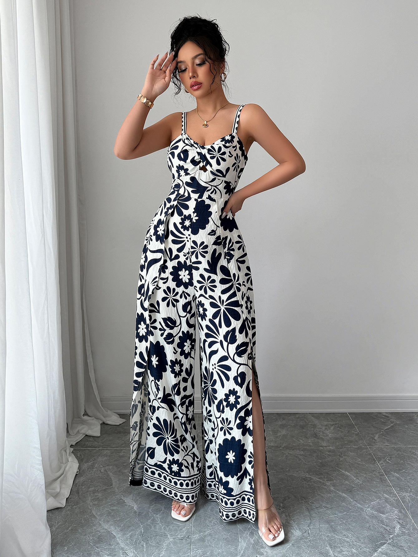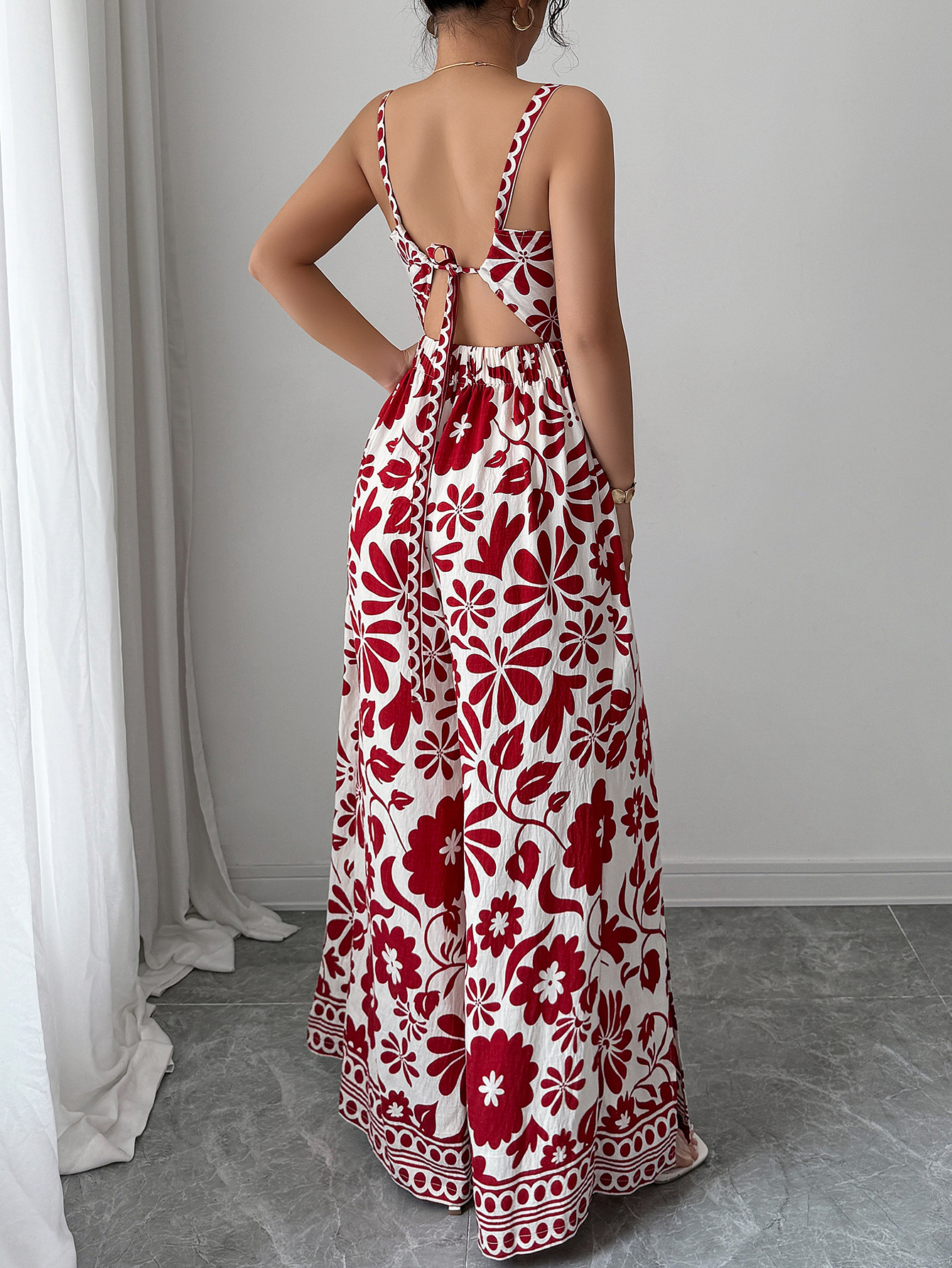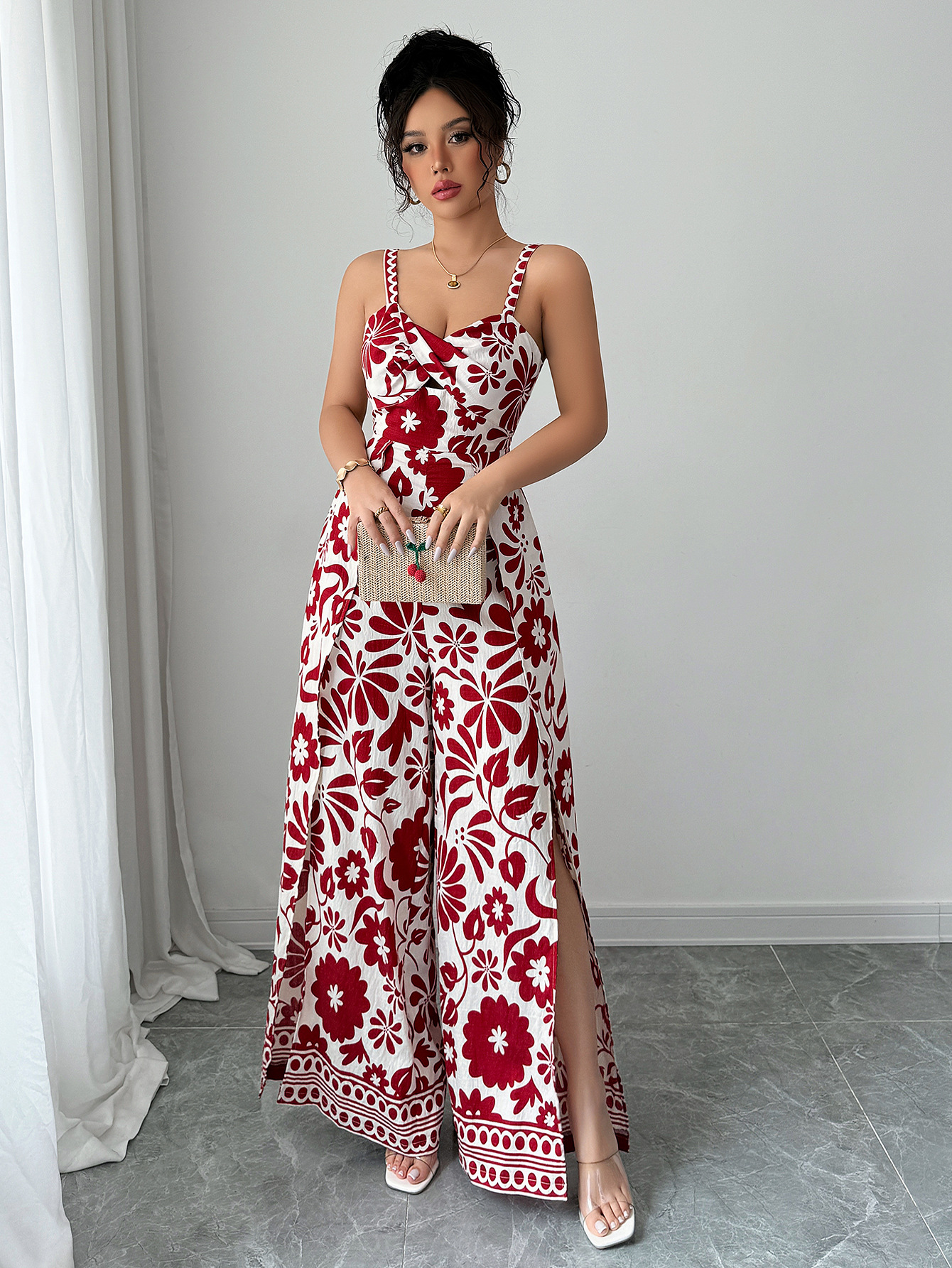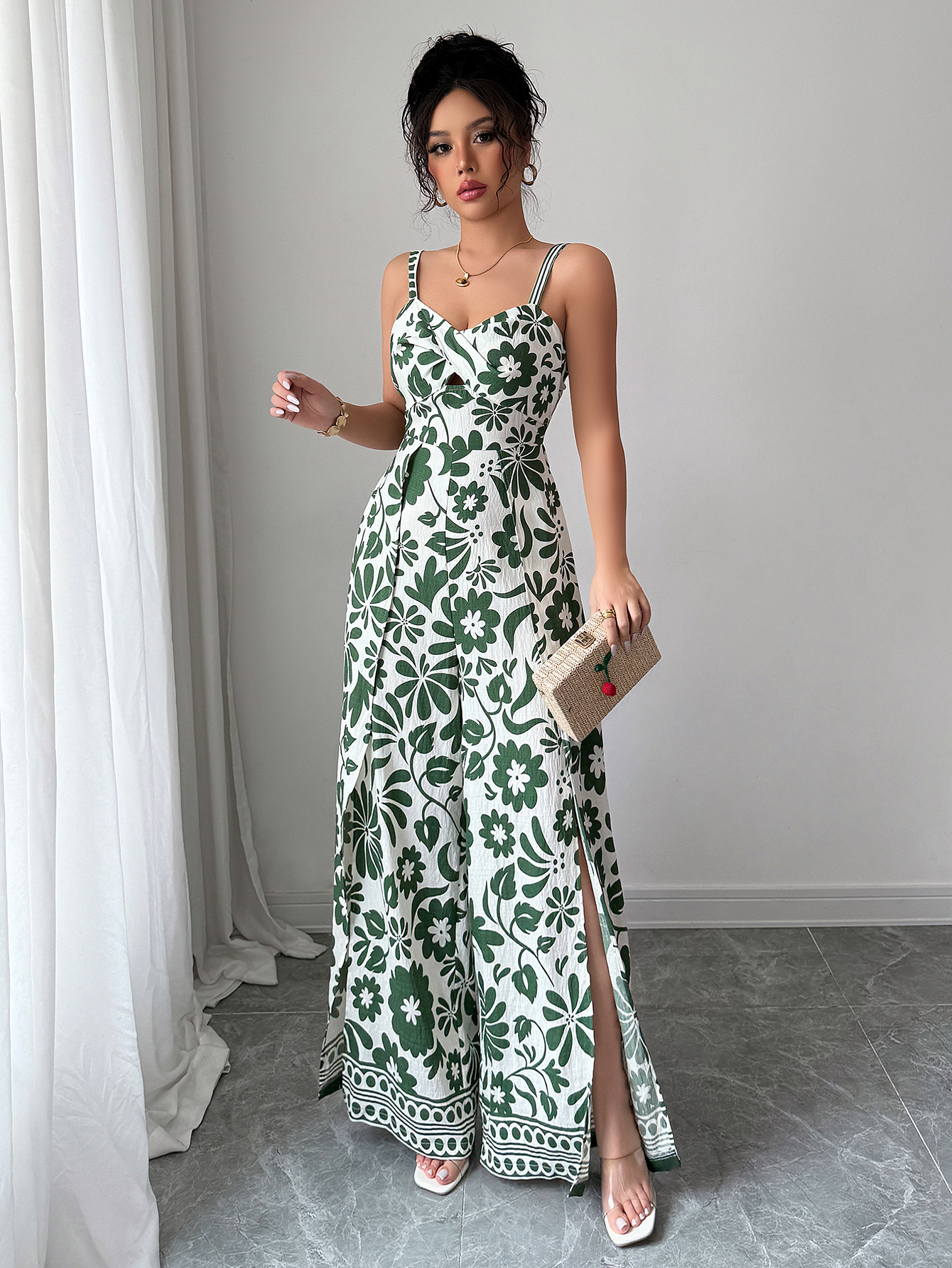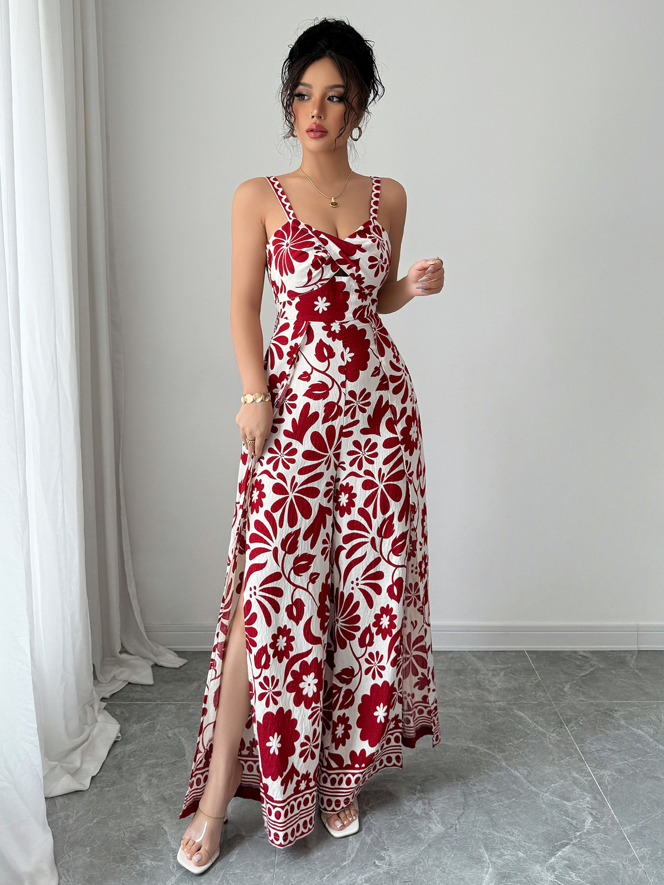 Elegant Graceful Printed Suspender Long Dress Women's Dress
