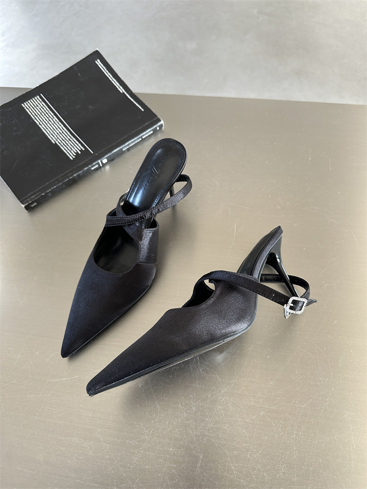 Elegant Pointed Toe Spring And Summer Light Satin Sandals Cross Strap Kitten Women's High Heels
