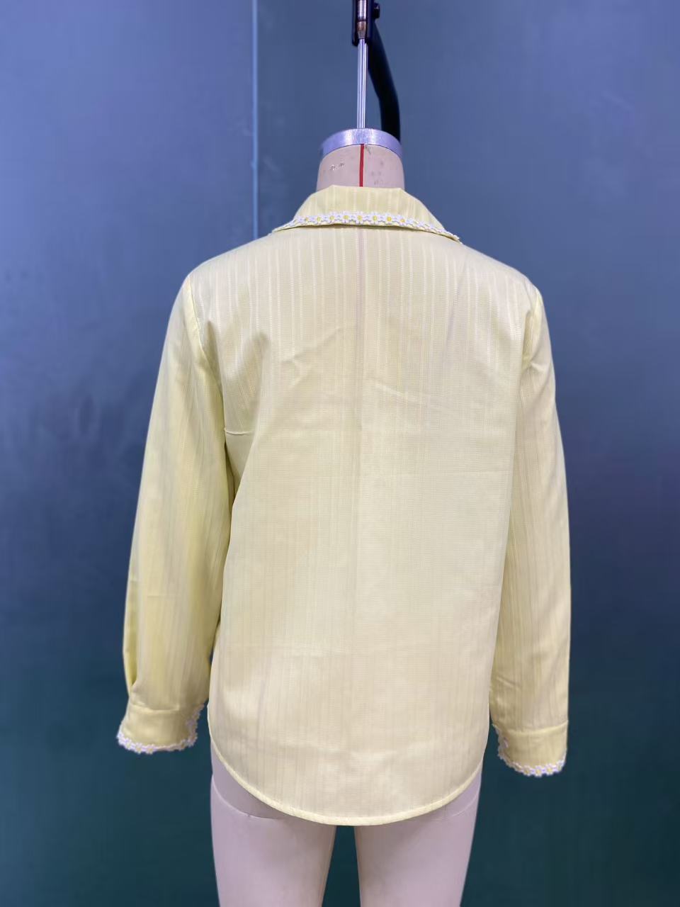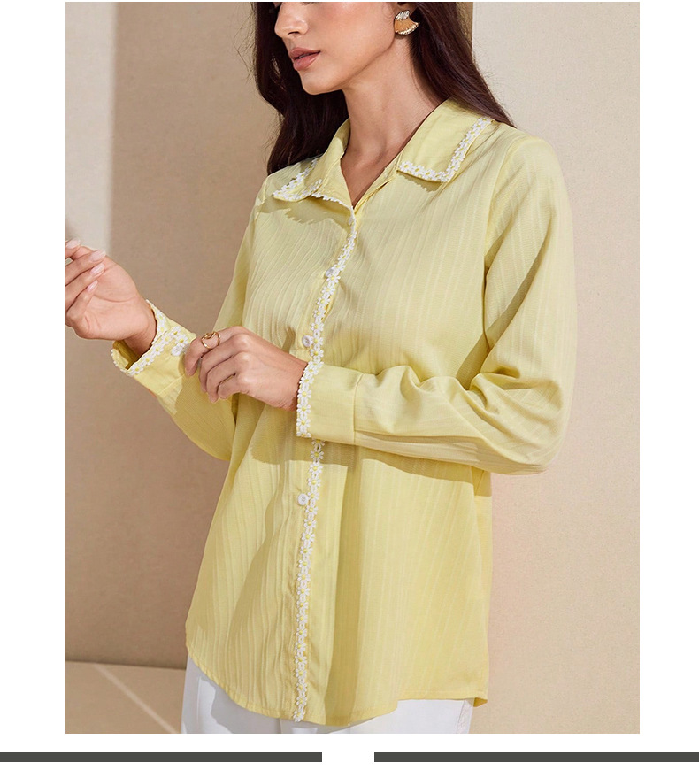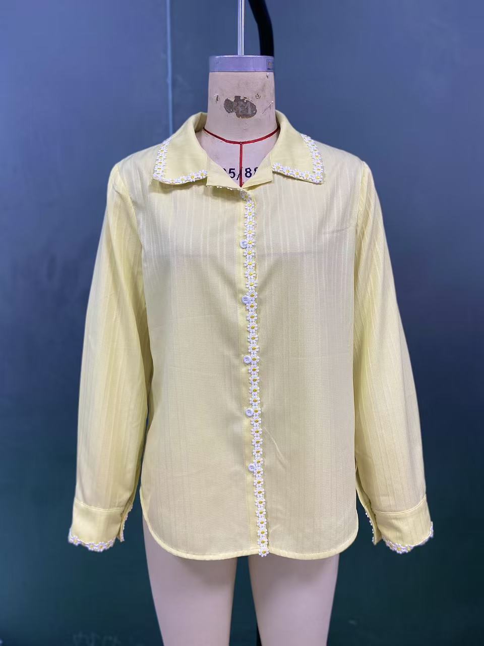 European And American Temperament Lace Long-sleeved Shirt Solid Color Cardigan Top