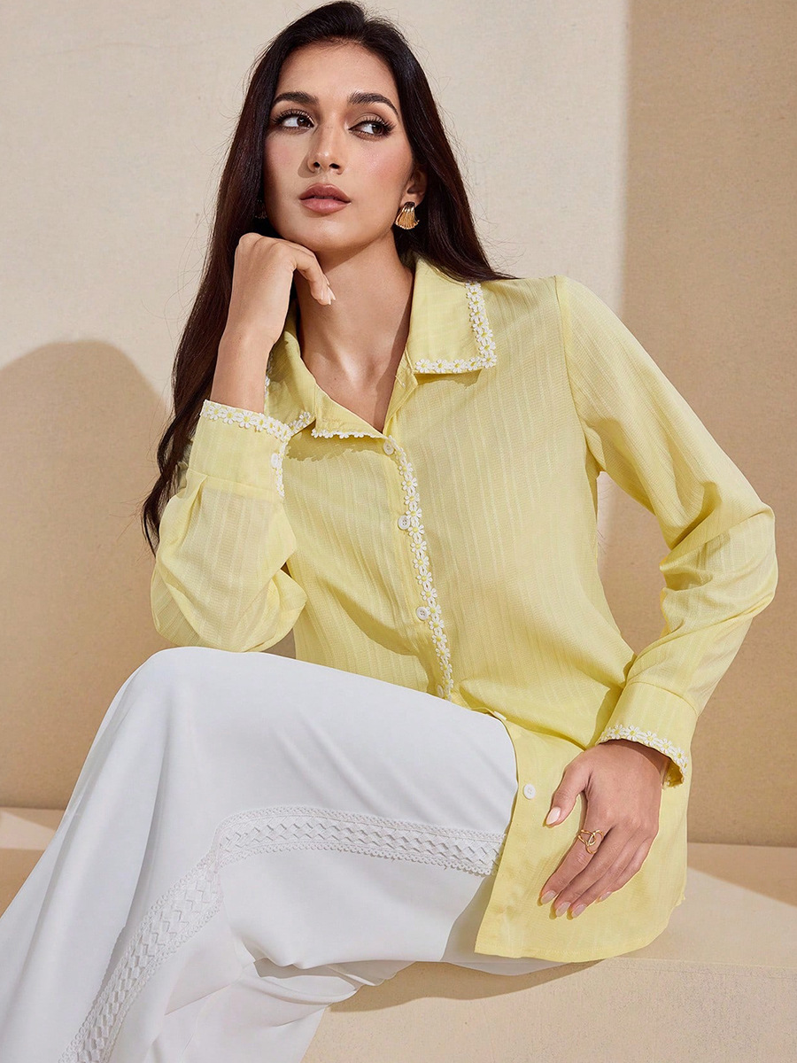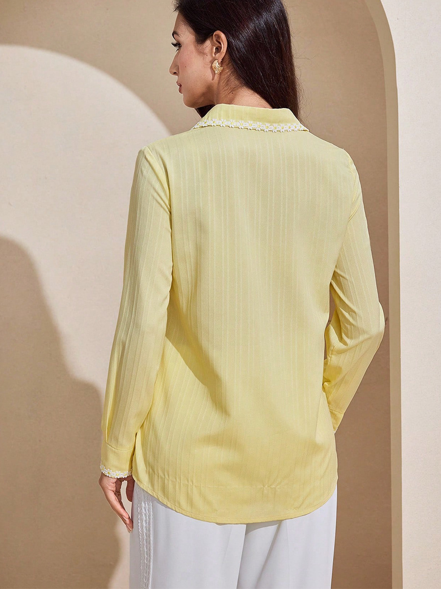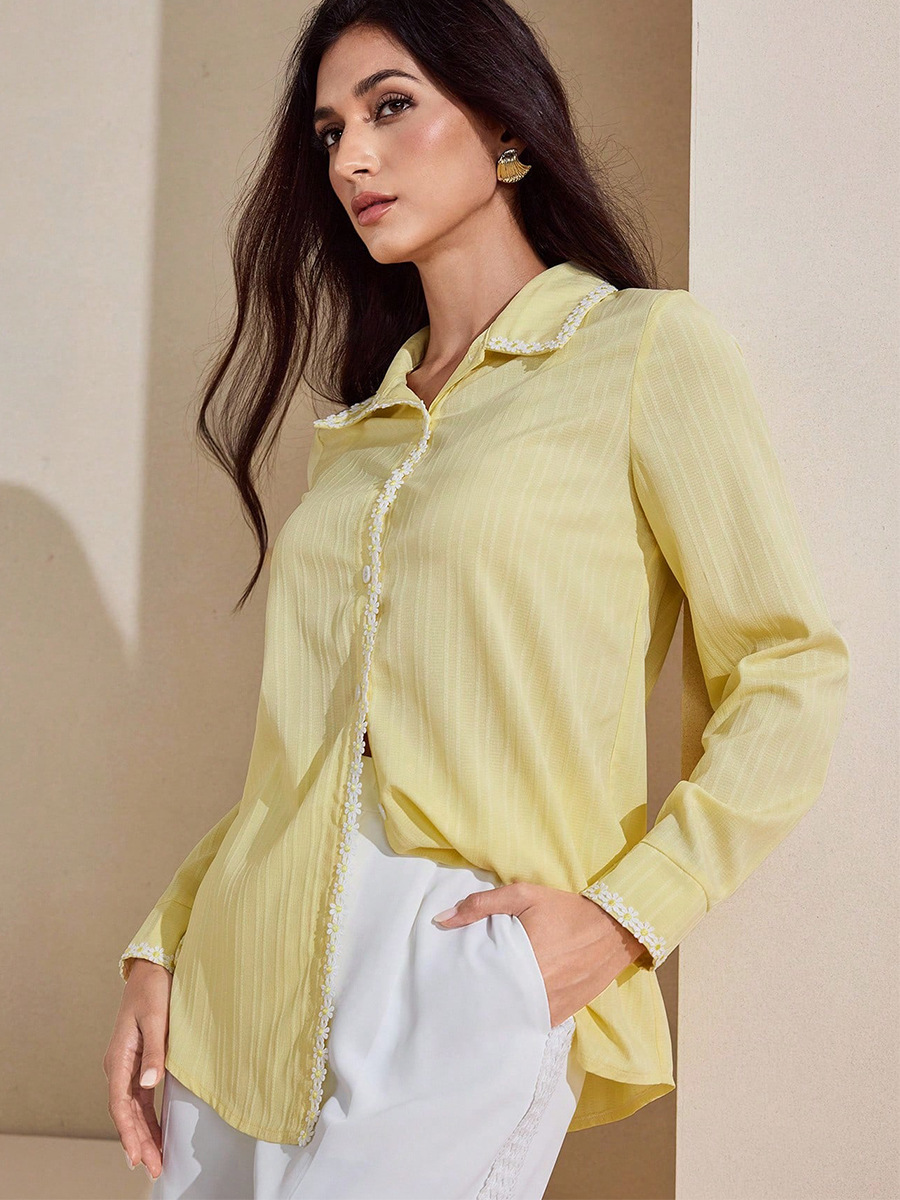 European And American Temperament Lace Long-sleeved Shirt Solid Color Cardigan Top