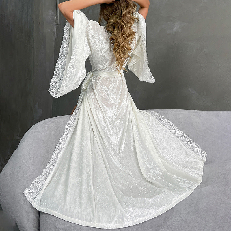Flare Sleeve Tie-neck Plus Size Homewear Women