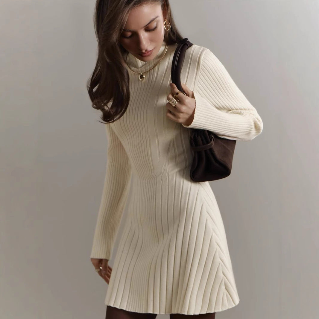 Long Sleeve Half Turtleneck Elegant Cute A- Line Skirt
