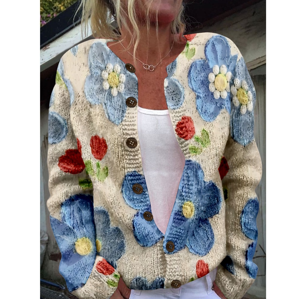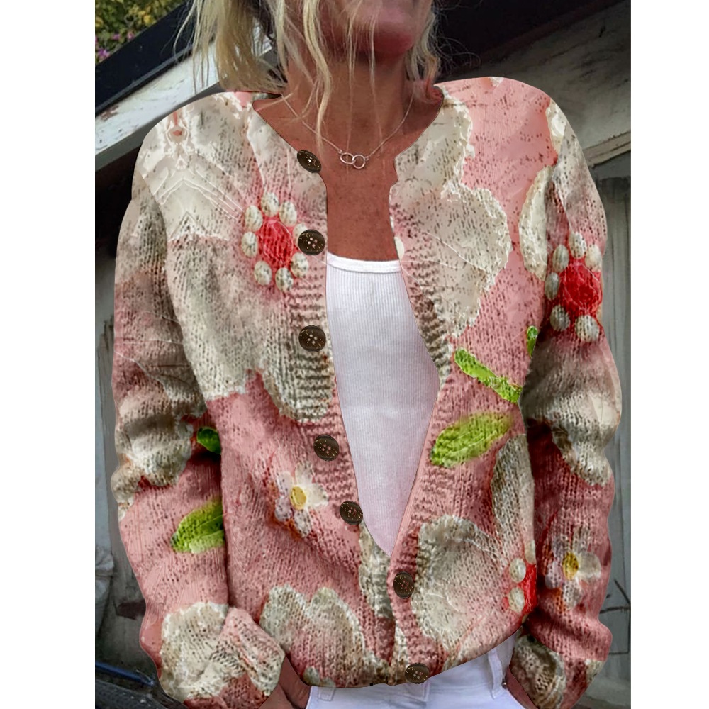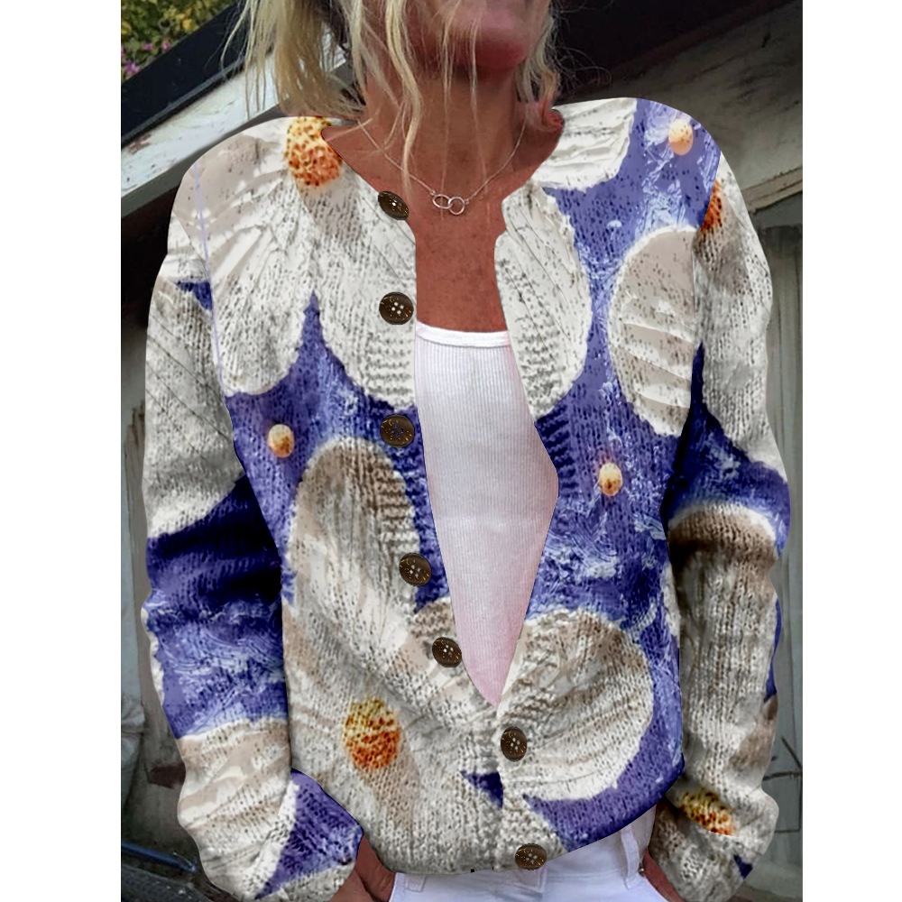 New Women's Autumn And Winter Style Loose 3D Printed Knitted Cardigan Sweater
