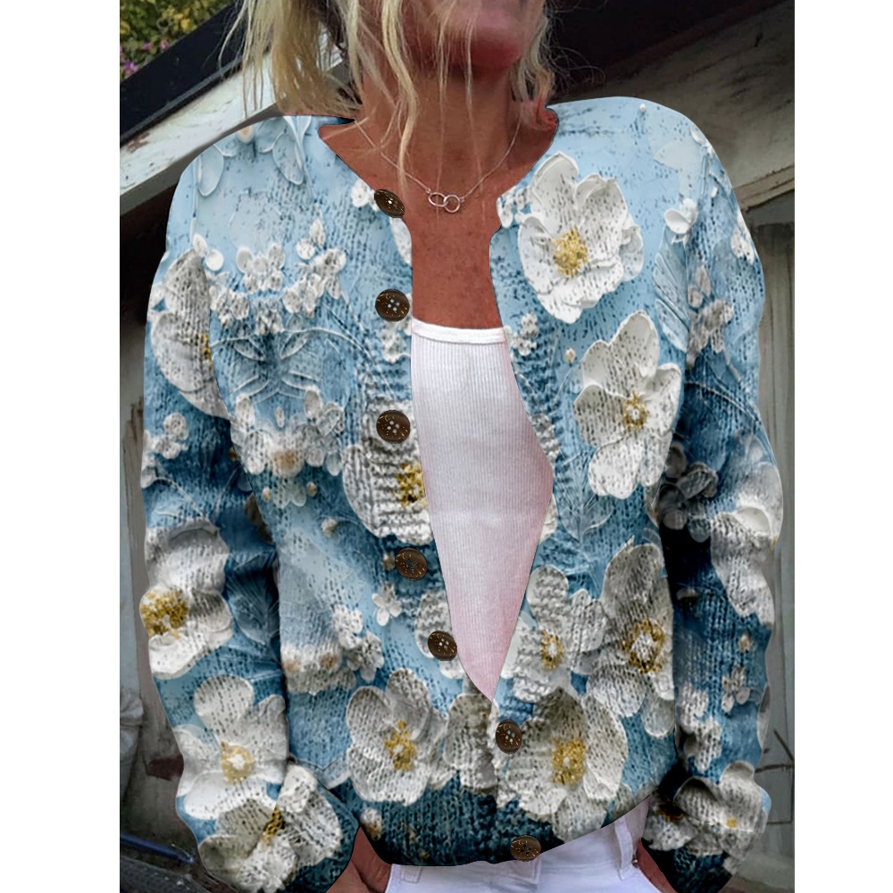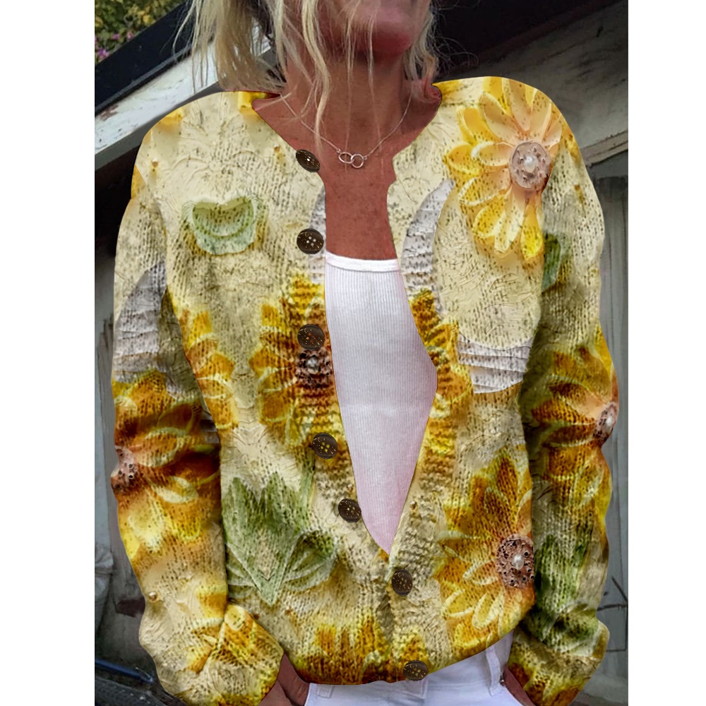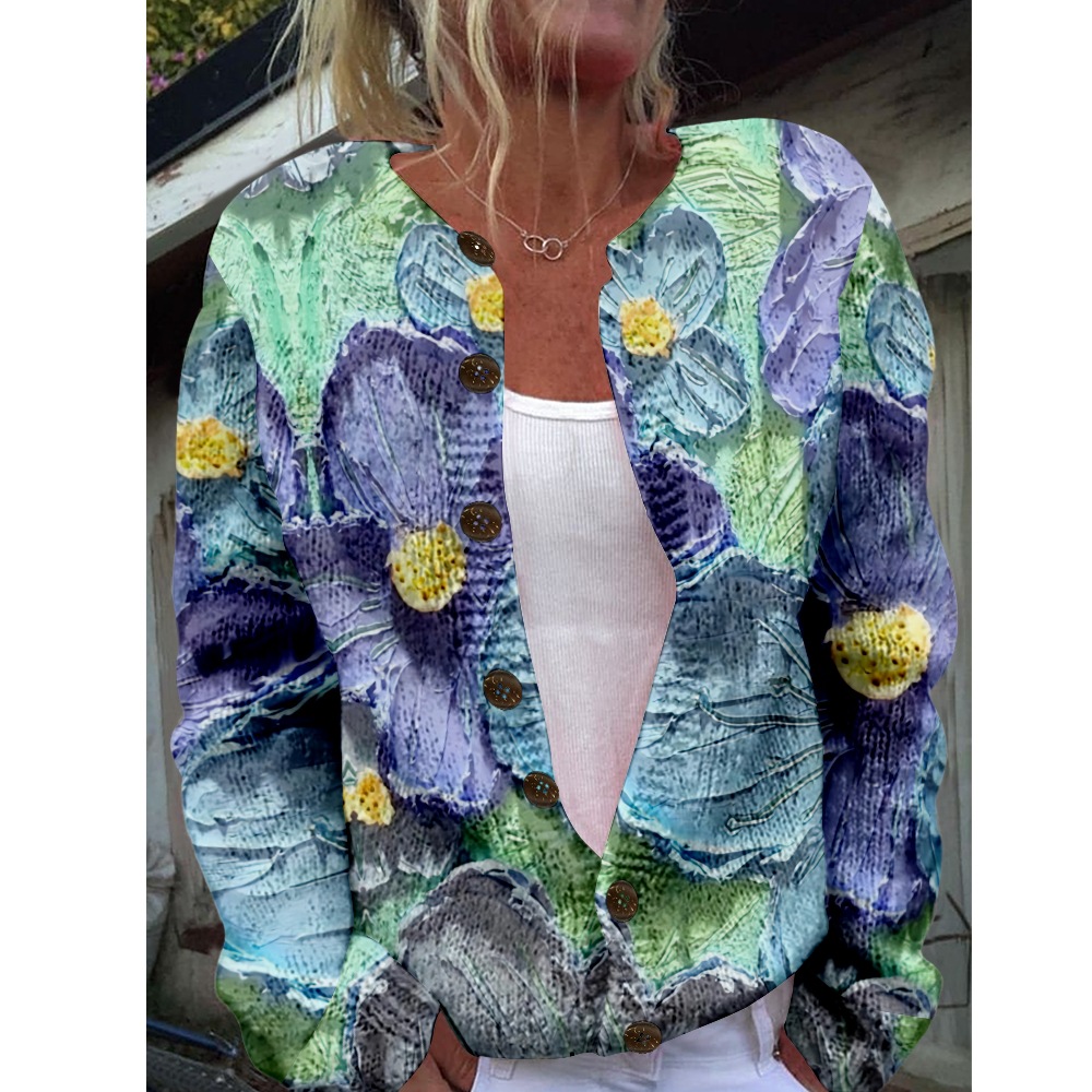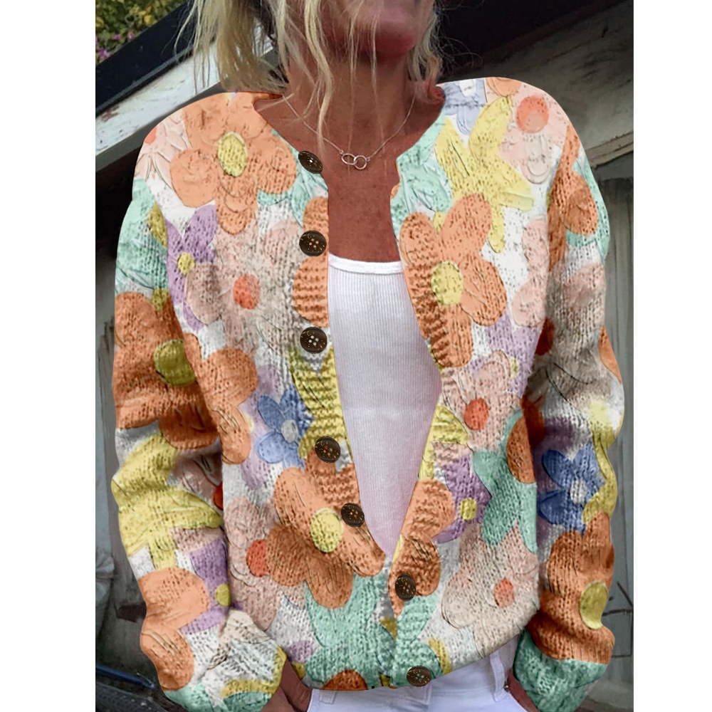 New Women's Autumn And Winter Style Loose 3D Printed Knitted Cardigan Sweater