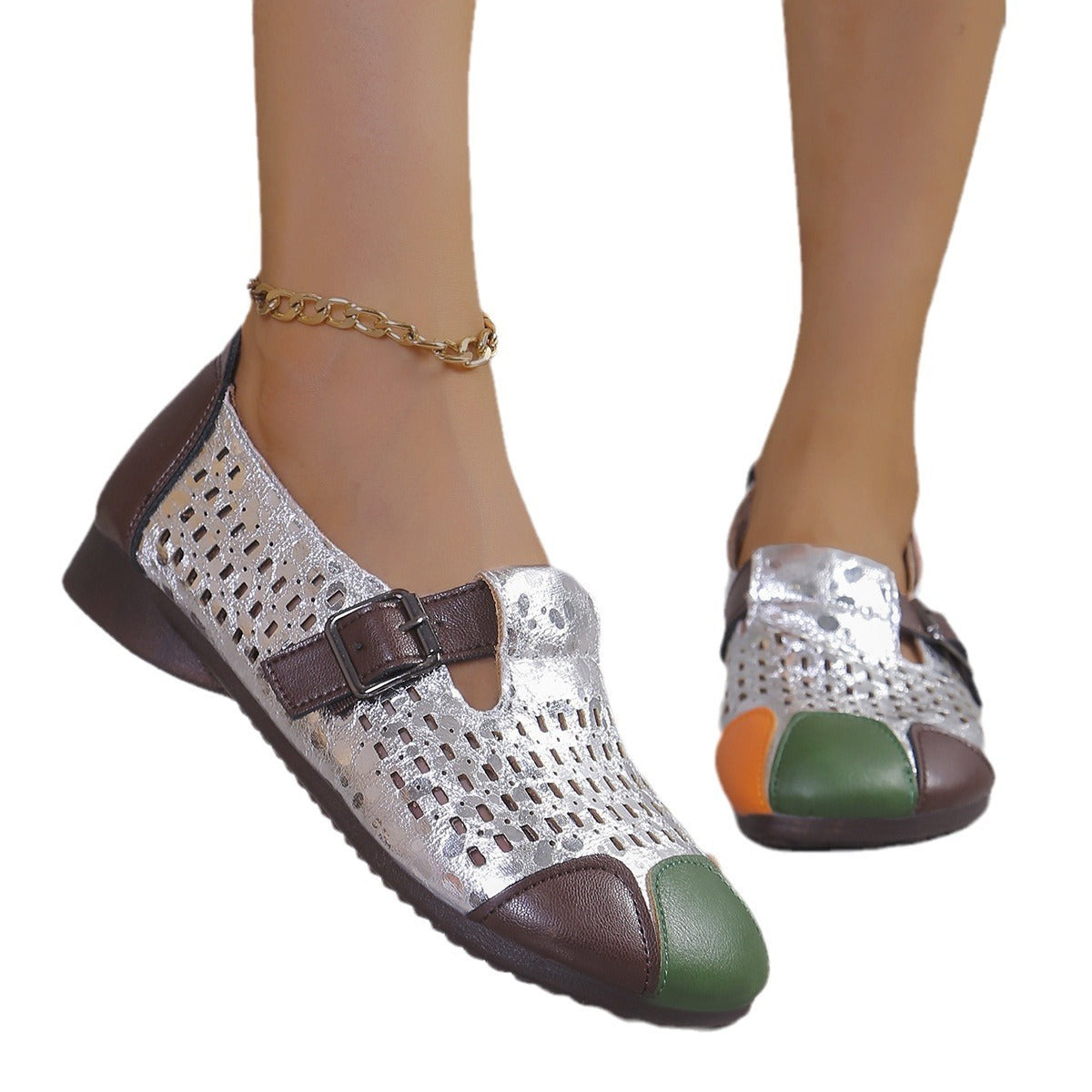 Plus Size Beef Tendon Middle-aged Mom Shoes Hollow Out Flat Bottom Comfort Leisure