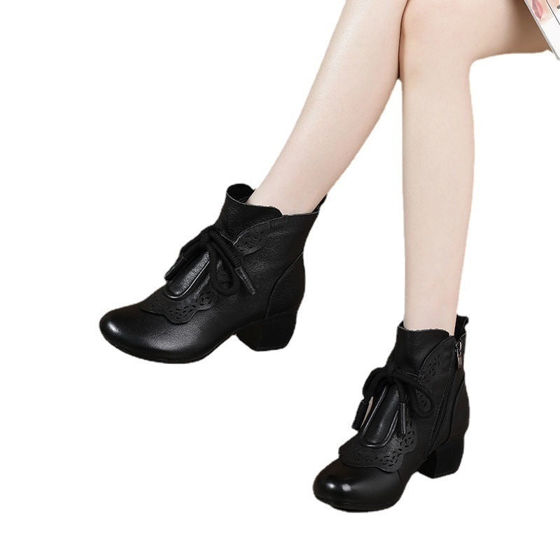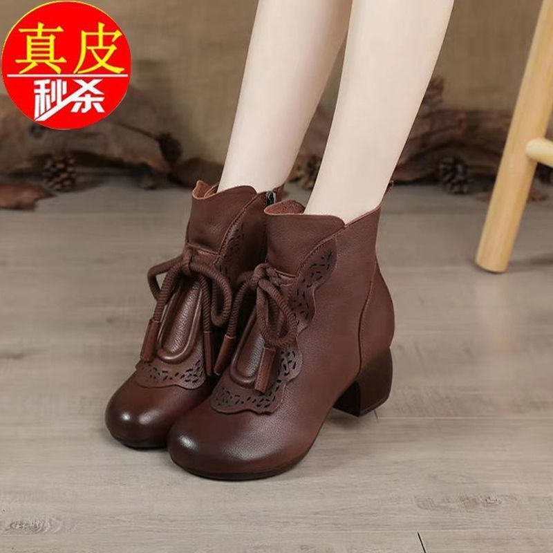 Real Soft Leather Women's Leather Boots Ethnic Style Retro