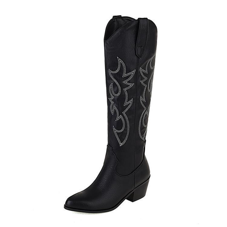 V Cut Western Cowboy Boot Women's High Heel Pointed Toe Knight Boots Below The Knee Boots Slim High