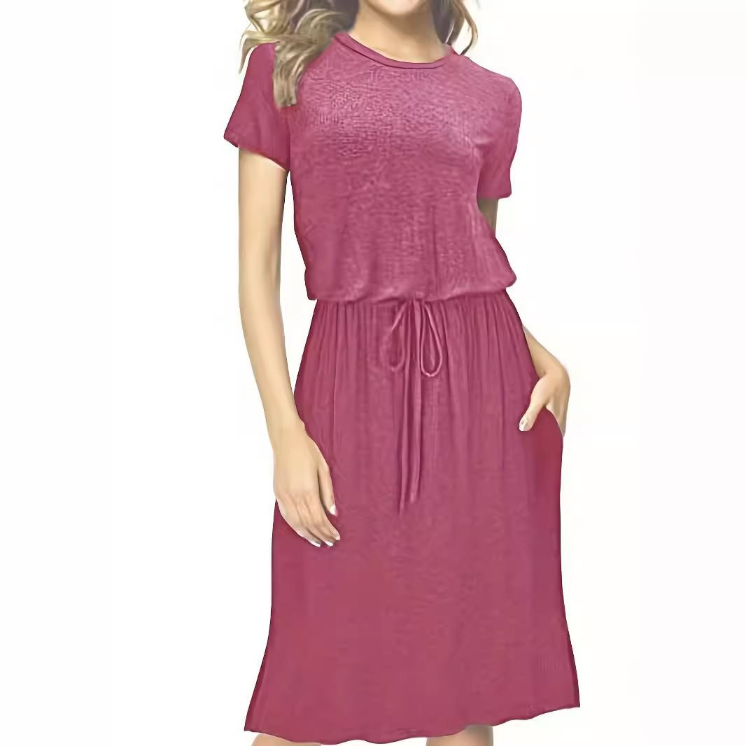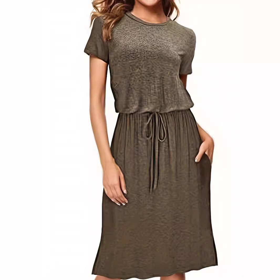 Waist-tight Pure Color Split Irregular Crew Neck Dress