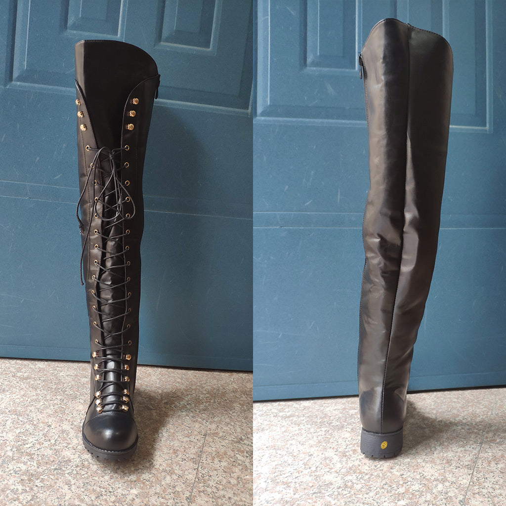 Women's solid color lace-up boots