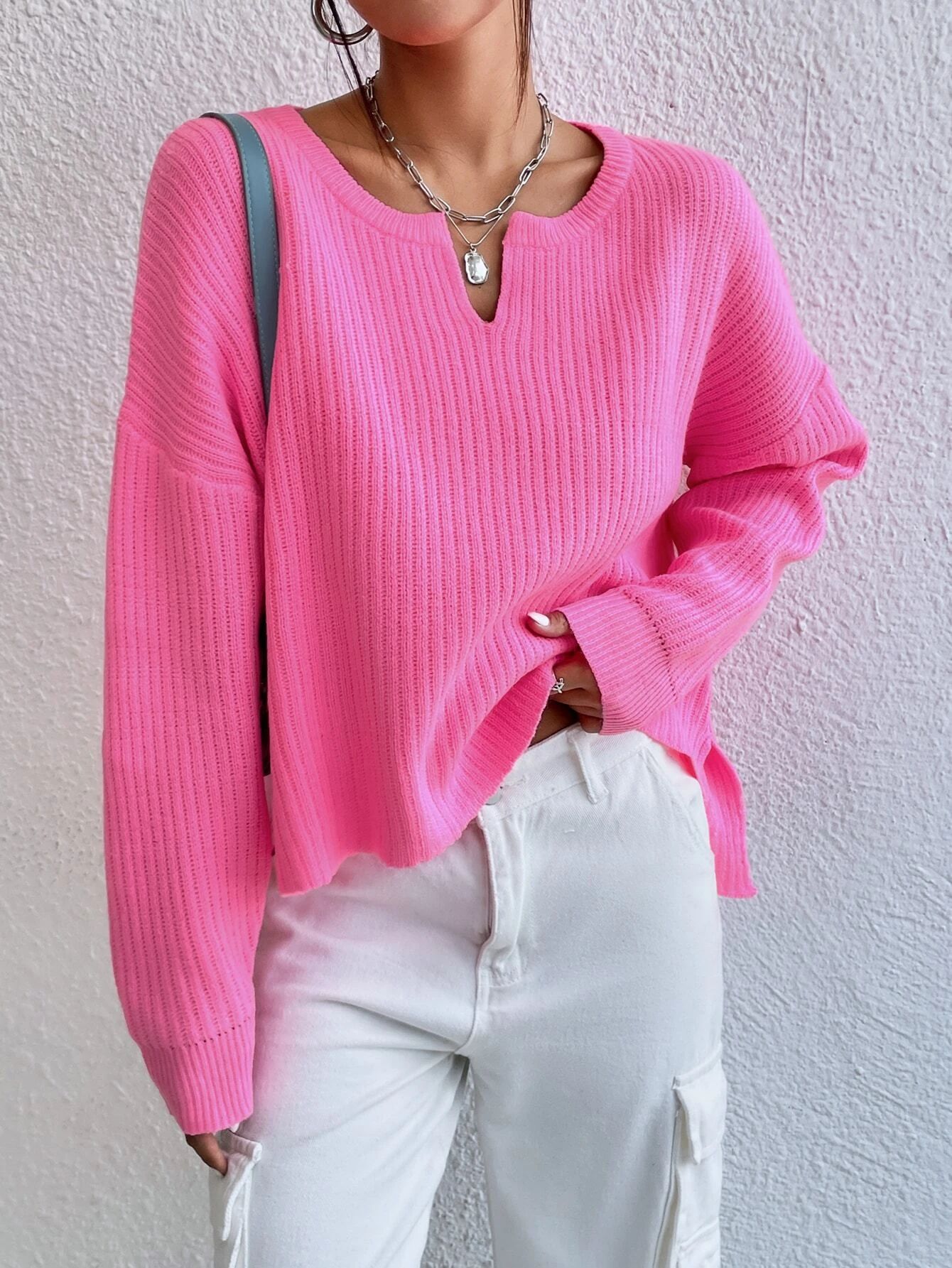 Women's Solid Color Sweater Niche V-neck Loose Leisure All-matching Long Sleeve Sweater